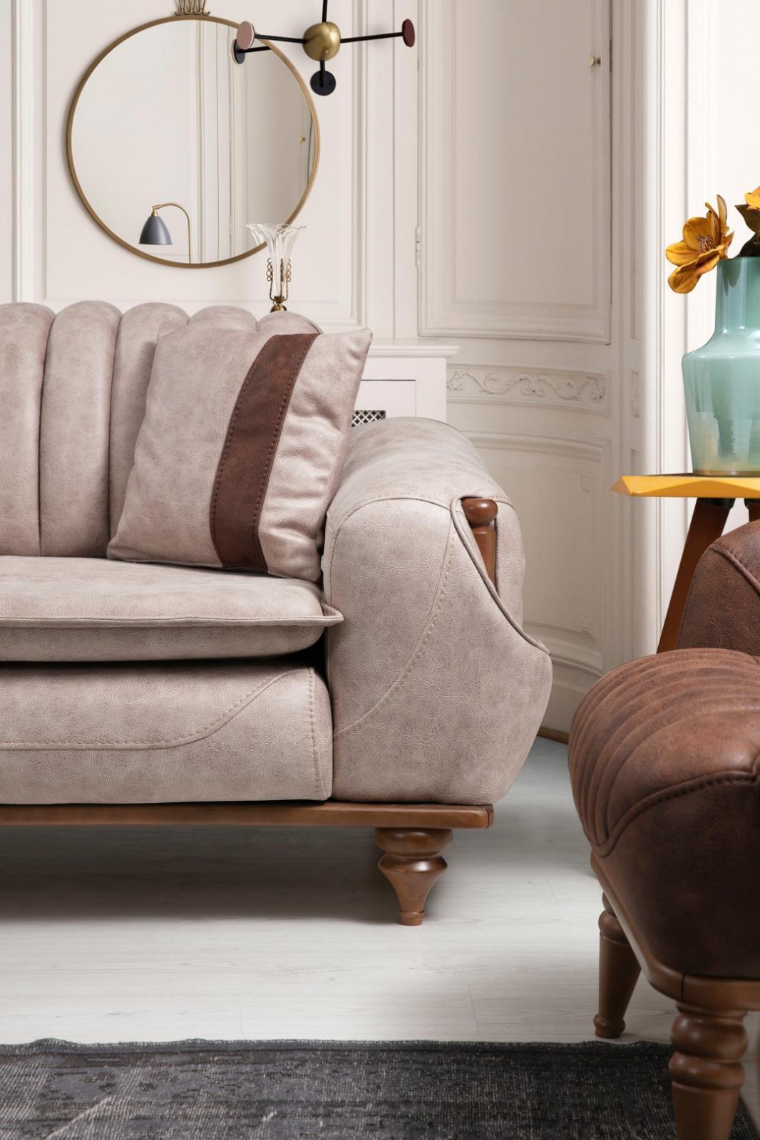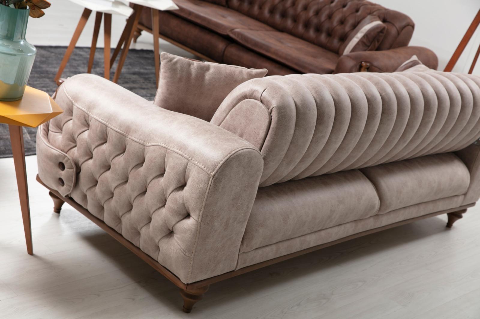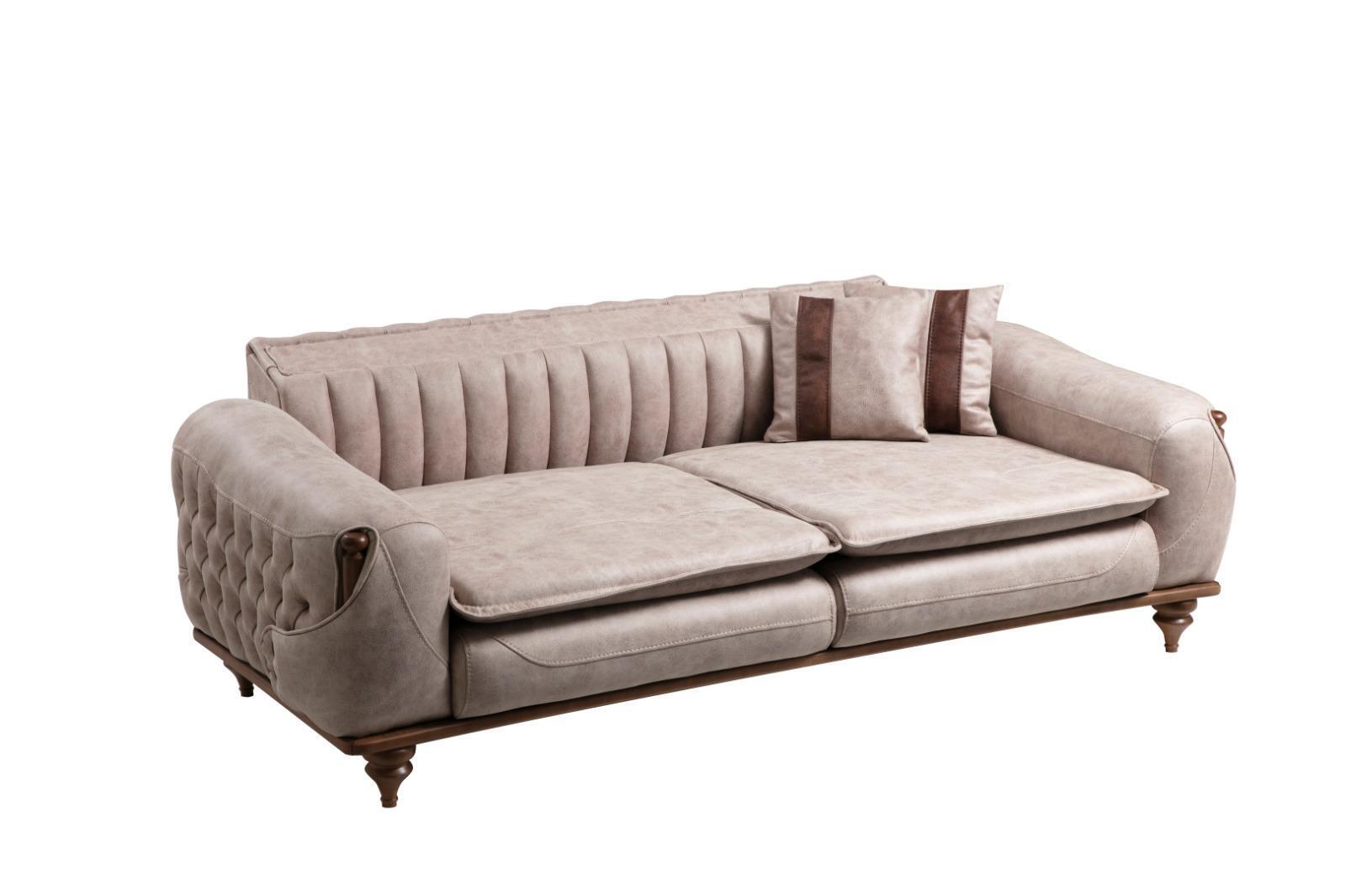Beige Dreisitzer Chesterfield Couch Polster Möbel Textil Couchen Stoff