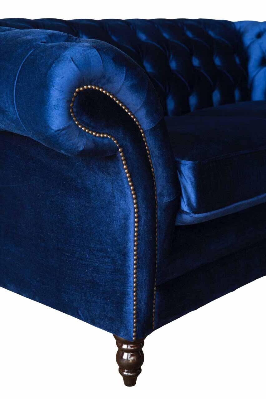 Chesterfield Büro Sitzmöbel Einrichtung Sofa Couch 2 Sitz Textil Blaue
