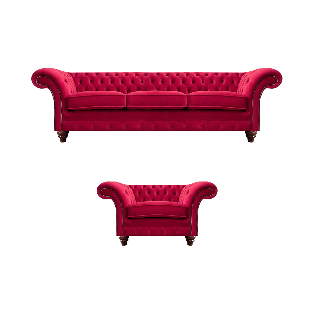 Optional können Sie dieses Set mit einem 4-Sitzer oder 2-Sitzer Sofa erweitern. Zudem stehen verschiedene Materialien wie Premium Kunstleder, Echtleder und Premium Samt Stoff zur Auswahl. Für ein individuelles Design können Sie Kristallsteine statt Knöpfe hinzufügen. Mit der optionalen Bettfunktion und Matratze wird dieses Set auch zu einem gemütlichen Schlafplatz für Gäste. Erleben Sie Luxus und Komfort mit der Chesterfield Rote Couchgarnitur. EAN: 4067282746763