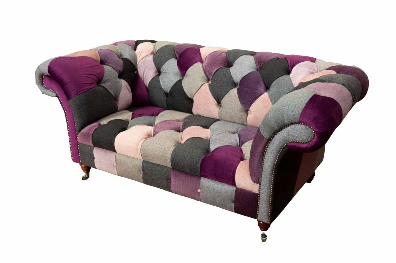 Chesterfield Stoffsofa Couch Polster Design 2 Sitzer Textil Sofas Grau