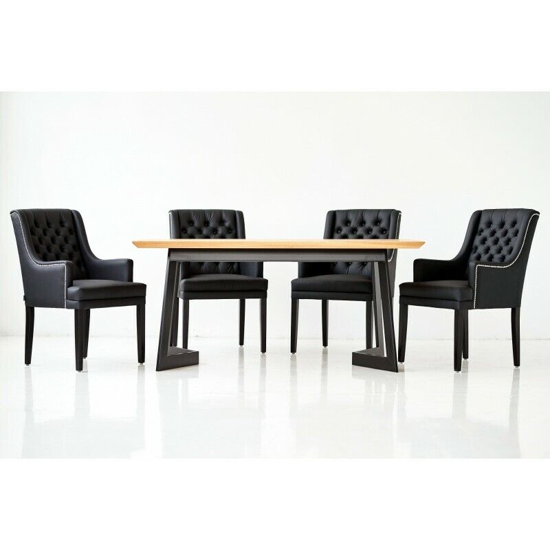 Designer Esszimmer Tisch 4 Chesterfield Lehnstühle Sitz Gruppe Stühle