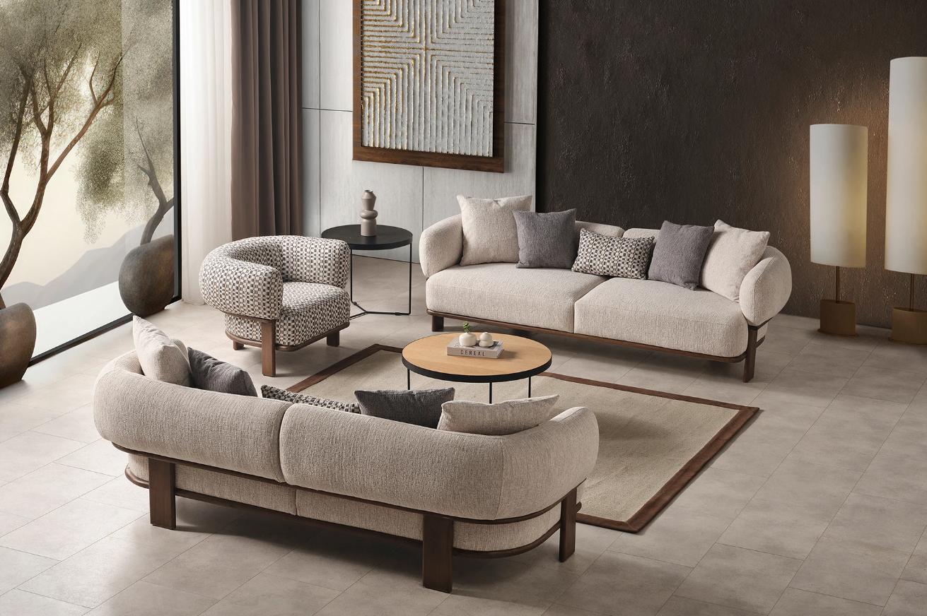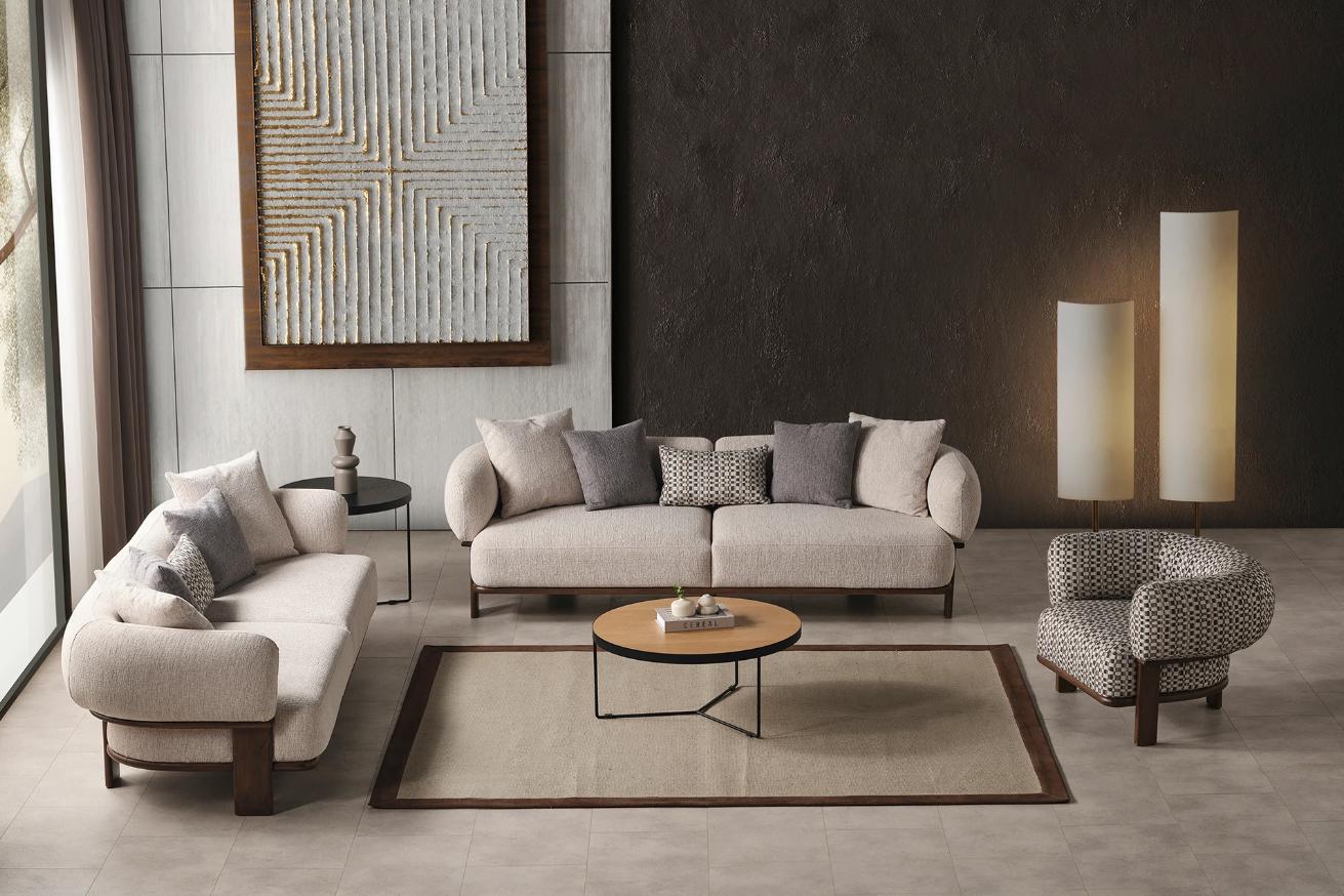 Material: Gefertigt aus robustem Holz und luxuriösem Textil, garantiert dieses Sofa Set eine langlebige und stabile Konstruktion. Die hochwertige Polsterung sorgt für optimalen Sitzkomfort und eine angenehme Haptik.
