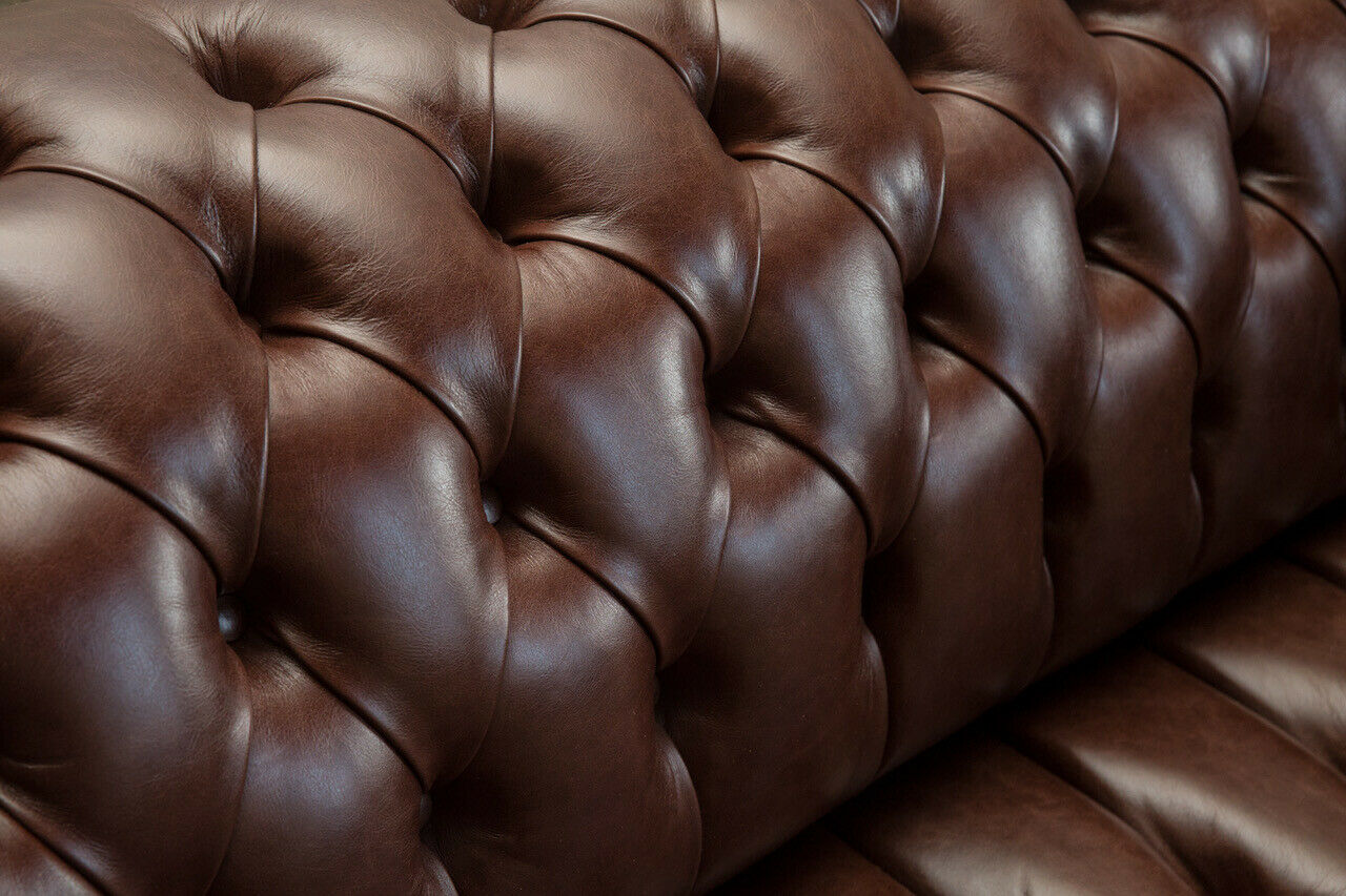 Genießen Sie zeitlose Eleganz und höchsten Komfort mit unserem klassischen Chesterfield Möbel Wohnzimmer Sofa Couch Sitz Polster Couchen Sofas. Dieses exquisit gefertigte Sofa besticht durch sein edles Design und die hochwertige Verarbeitung. Mit Maßen von 185 x 98 x 79 cm (2-Sitzer) bietet es großzügigen Platz für gemütliche Stunden allein oder mit Ihren Liebsten. Die Premium Kunstleder-Ausführung in freier Farbwahl sorgt nicht nur für ein luxuriöses Erscheinungsbild, sondern auch für eine pflegeleichte Oberfläche. Optional können Sie gegen Aufpreis zwischen verschiedenen Materialien wie Echtleder, Samtstoff oder dem fleckenabweisenden Magic Home Stoff wählen. Das echte Holz-Innengestell und der Federkern garantieren zudem eine solide und bequeme Sitzmöglichkeit für lange Zeit.