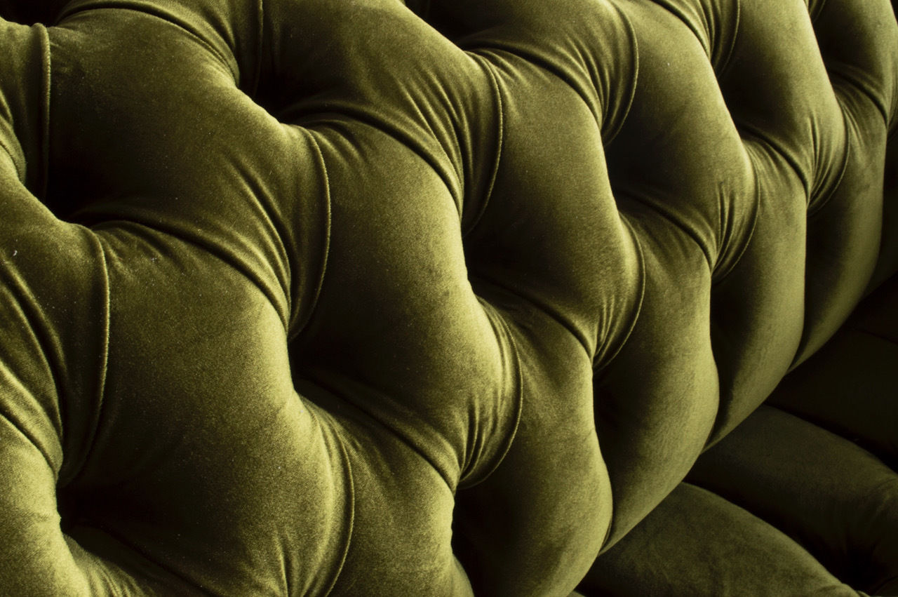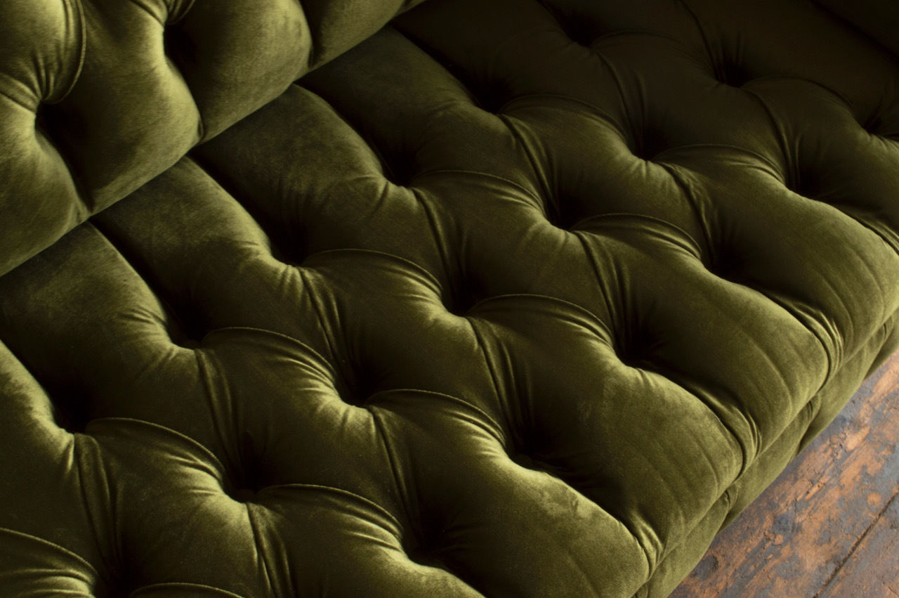 Klassische Sofa 2 Sitzer Chesterfield Couch Textil Samt Kristalle Grün Samt Neu