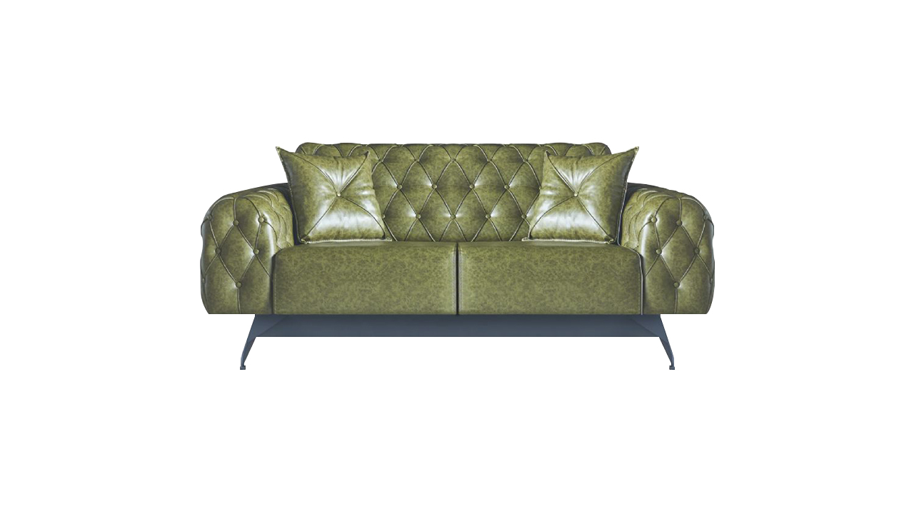 Ledersofa 2-Sitzer Sofa Grün Polster Klassisch Kissen Chesterfield Sofa